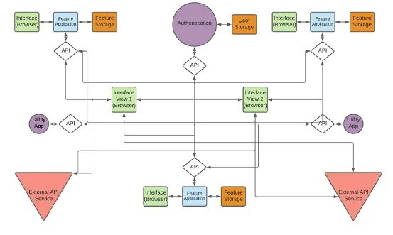 Applications could easily be split into workflows, environments, stacks, and software lifecycles, because an application was a “distinct” entity. With the widespread adoption of the API based “best in breed” development model, even thinking about a project as an “application” is becoming an outmoded concept, because what we are really building are systems and infrastructures. An extremely simple API based application might look something like this.
